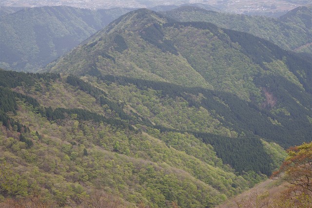 混んでいる山頂を後に下山します。花立山荘経由か登った小丸経由か迷いましたが、静かな山歩きが好きな私はやはり辿った道を選びました。下り始めて大倉尾根方面の展望です。