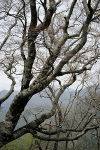 ブナの大木の枝が曲がりくねりながら天に向かって伸びています。