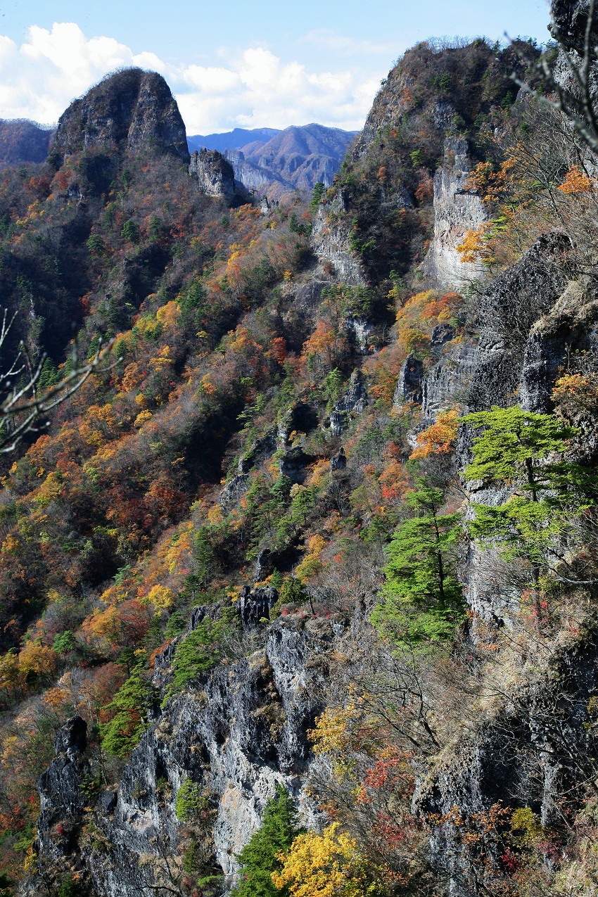 秋の裏妙義がこんなにきれいだとは思いませんでした。錦秋に彩られた山肌と奇岩が織り成す絶景、