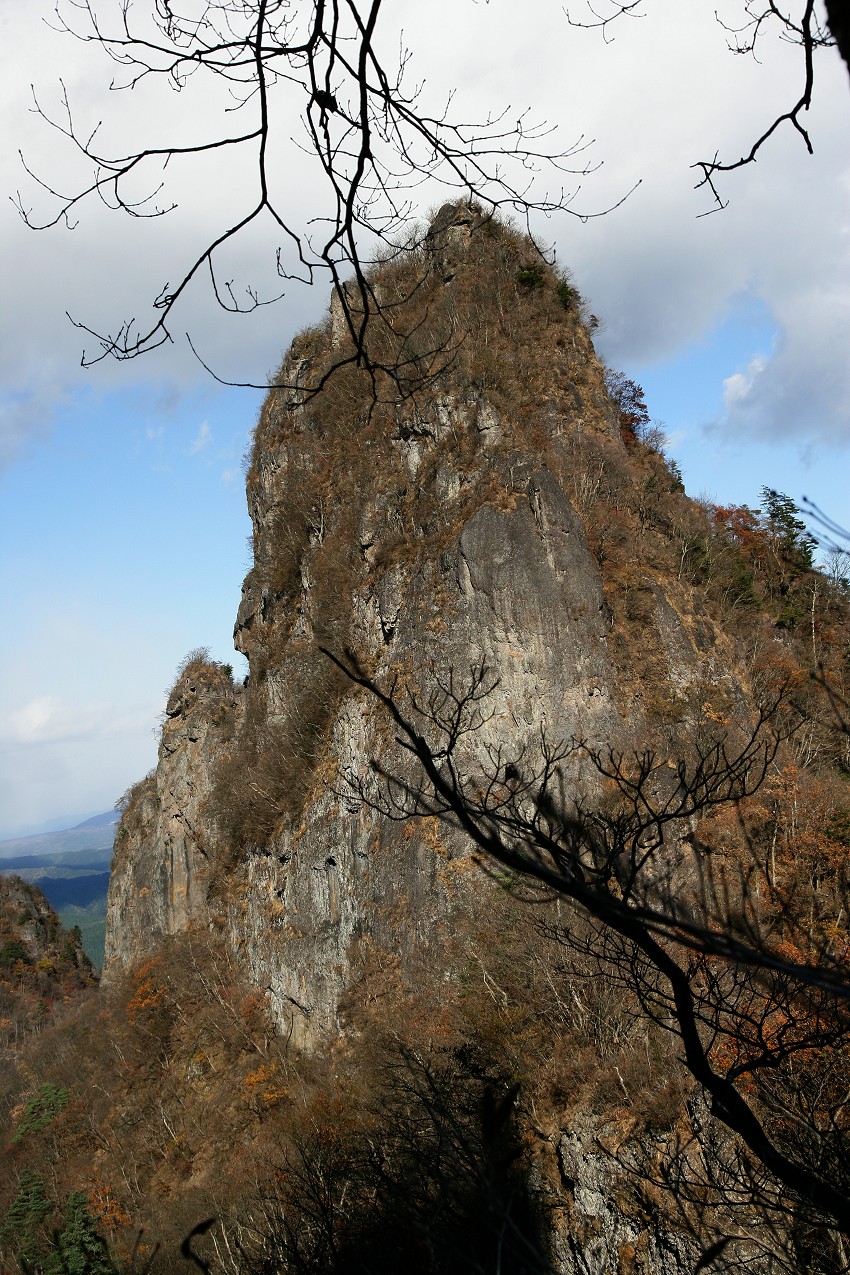 さすがにこの岩壁は登れません。このすぐ右下をトラバースしてきました。上の方の木々は葉を落として、冬の訪れが近いのですね。