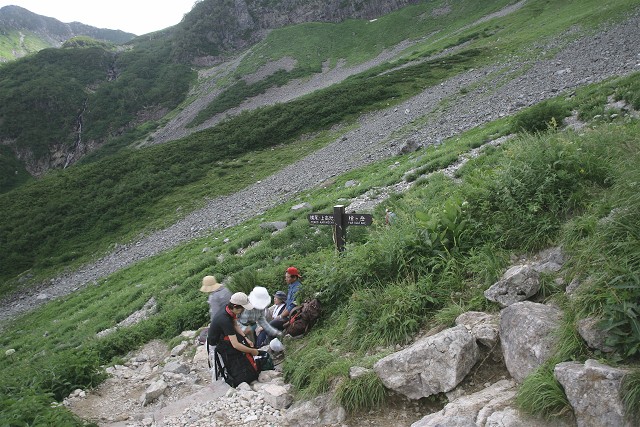 天狗原から横尾尾根、南岳へ続く道と、槍への道の分岐です。ここからさらに傾斜を増す道ですがたくさんのお花に励まされ頑張ります。