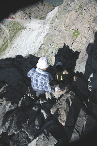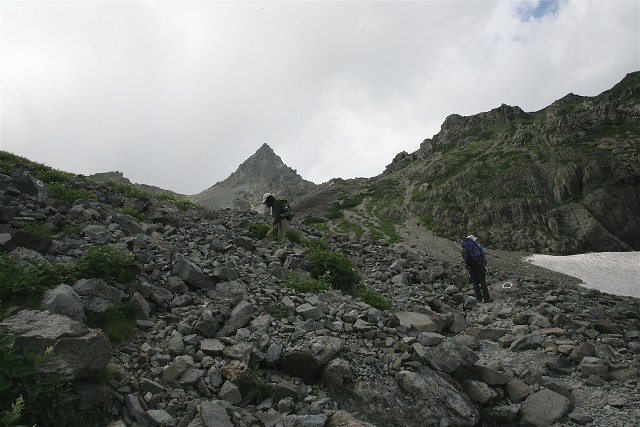 岩ばかりゴロゴロした斜面でも足元には小さな花が所狭しと咲いています。辛い登りを励ましてくれる花たちです。