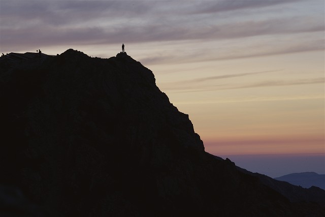 こんなに狭い山頂です。手前に私たちが座っている場所がありますが、あまり端に行くと岩が崩れて岩と一緒に落ちそうです。