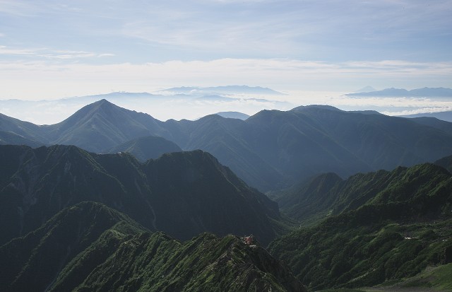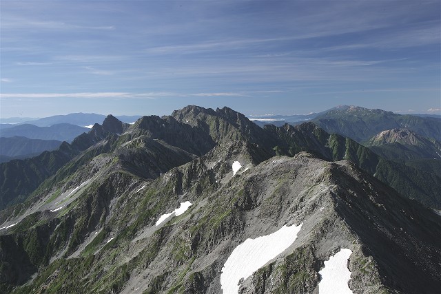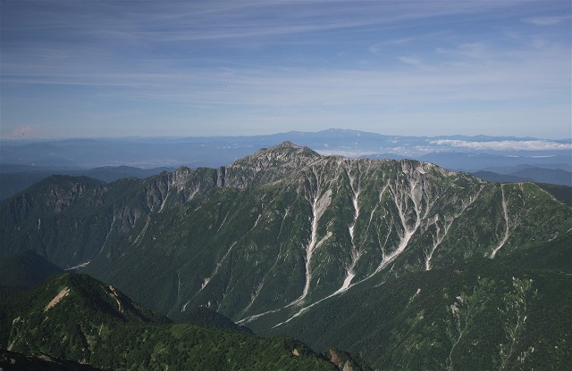 穂高へ続く3000mの峰が連なる稜線、いつかもう一度この稜線を歩いてみたい。