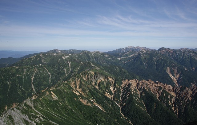 尾根に出ると東側の展望が開けます。北鎌尾根もすぐそこに。