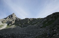 殺生ヒュッテの裏から東鎌尾根へ上がります。ほんの10分ほどの登りです。
