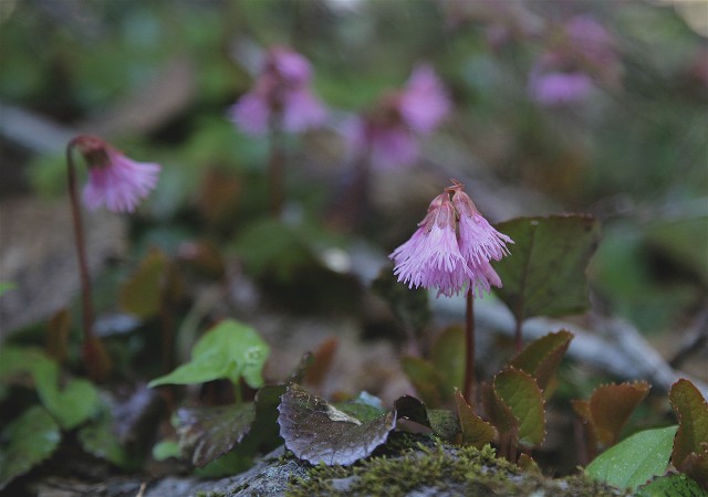 暫く登ると今度は咲いたばかりのたくさんのイワカガミの群落地がありました。こんな小さな花との出会いは嬉しいものです。