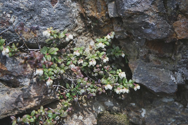 岩の割れ目から伸びた小さな葉の先にほんとに小さな花が咲いていました。