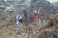 だいぶ稜線に近づきました。ここからは鉄階段と鎖場を少しで稜線に座るお地蔵様に辿り着きます。一緒に行った山仲間とちょっと一休みです。