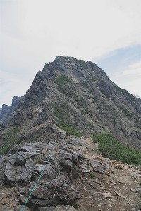 これから行く横岳です。ごつごつした岩の山です。ここからはまだ山頂は見えていません。